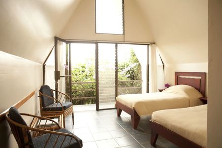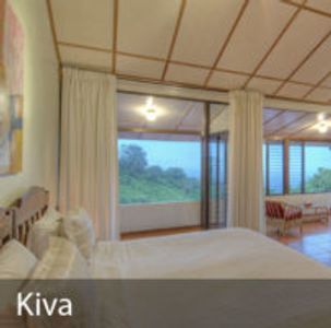 These mountainside rooms offer plenty of space and comfort. Option of king-size or two twin beds. The Kiva building houses 6 units- 2 units on top floor, 2 units on middle floor, 2 units on lower floor. We call the top and middle units “Kiva Upper” and the lower floor units “Kiva Lower.” Kiva Upper units have balconies overlooking the Central Valley, while the Kiva Lower units have private patios overlooking tropical gardens and greenery.