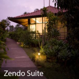 A wraparound balcony and huge picture windows make magnificent panoramic views a main feature of the Zendo Suite. A glass shower surrounded by greenery brings in the beauty of nature while still affording privacy.