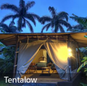 Our hybrid tent-bungalows are the ultimate eco-chic accommodations for nature lovers. Spacious six-sided tent bungalows contain the same comfortable beds and relaxing lounge areas as other rooms, electricity (no candles, please), space to store clothes, and of course, plenty of bracing mountain air. Attractive shared baths surrounded by gardens are steps away. Option of king-size or two twin beds.